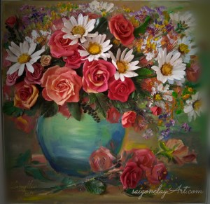 Saigon Clay Art Clay Art Painting, Clay flower, Oil painting, Tranh sơn dầu Tranh hoa đất 193 30/08/2017 CAP193 – Hồng đỏ & Cúc trắng – Size 60x60cm Share this: Share on Facebook (Opens in new window) Facebook Like Loading... Related
