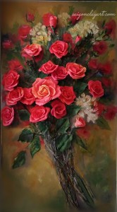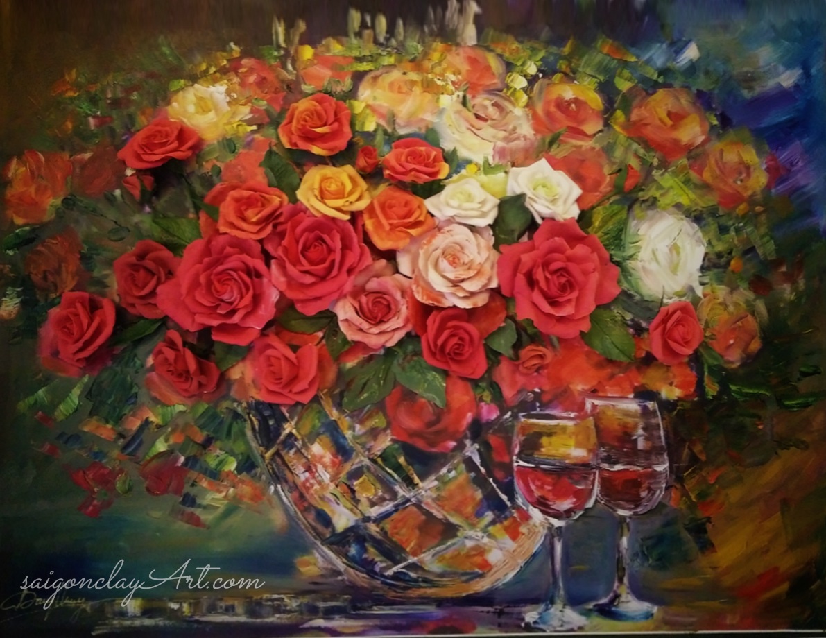 Tranh hoa Nghệ thuật 214 15/01/2018 Saigon Clay Art . Clay Art Painting, Clay flower, Oil painting, Tranh sơn dầu CAP214 – Tác phẩm: Red Roses – 77X52cm