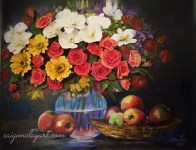 Tranh hoa Nghệ thuật 209 10/01/2018 Saigon Clay Art . Clay Art Painting, Clay flower, Oil painting, Tranh sơn dầu CAP209 – Tác phẩm: Red Roses Basket – 62X62cm