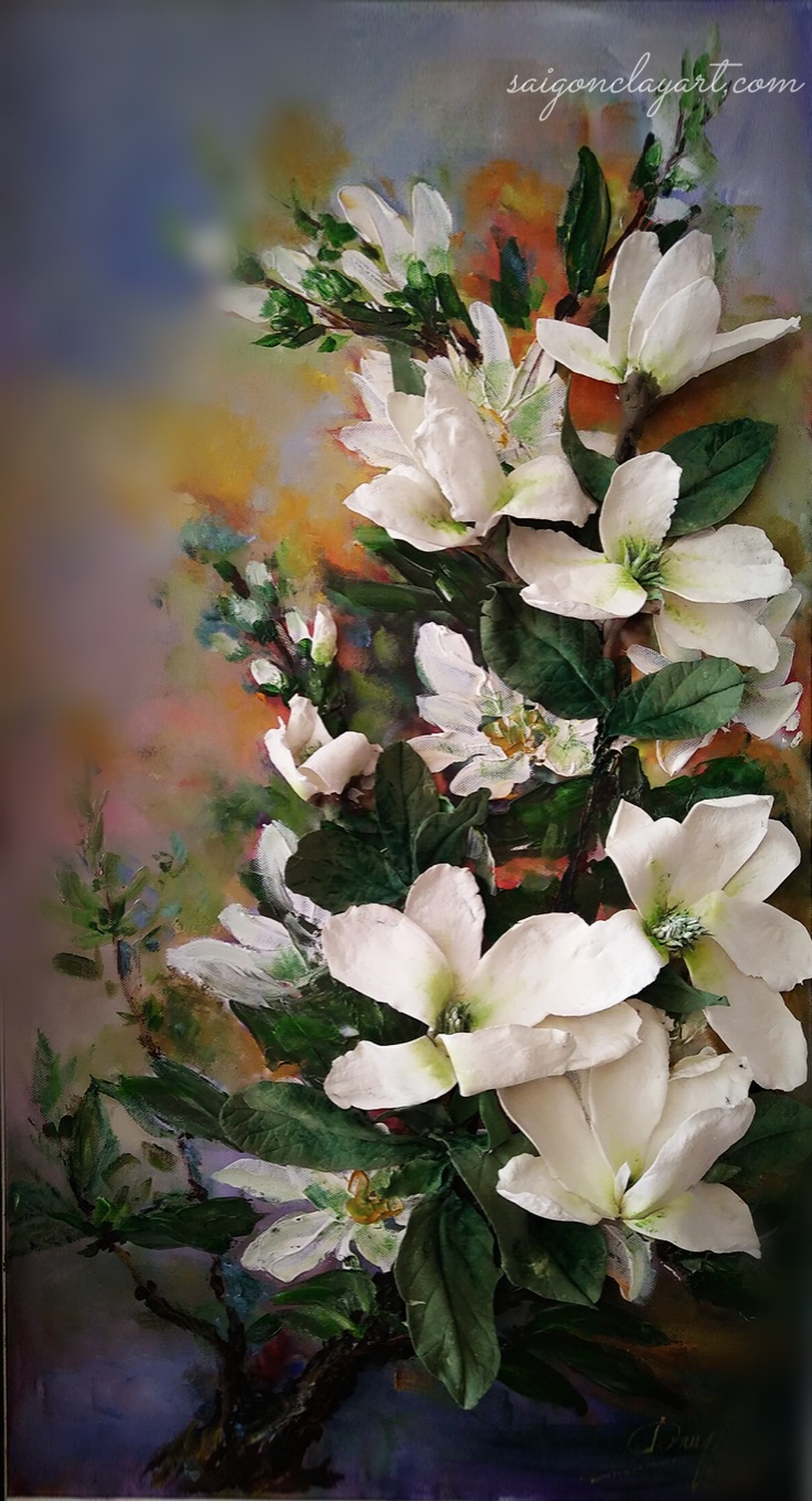 Tranh hoa Nghệ thuật 213 15/01/2018 Saigon Clay Art . Clay Art Painting, Clay flower, Oil painting, Tranh sơn dầu CAP213 – Tác phẩm: Magnolia – 77X52cm