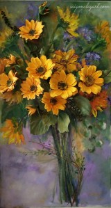 Tranh hoa Nghệ thuật 215 15/01/2018 Saigon Clay Art . Clay Art Painting, Clay flower, Oil painting, Tranh sơn dầu CAP215 – Tác phẩm: Sunflowers – 77X52cm