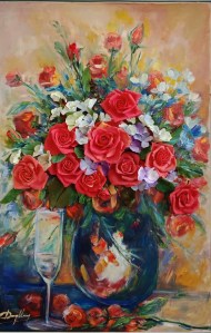 Tranh hoa Nghệ thuật 218 18/09/2018 Saigon Clay Art . Clay Art Painting, Clay flower, Oil painting, Tranh sơn dầu CAP218 – Tác phẩm: Red Roses – Size 57x77cm