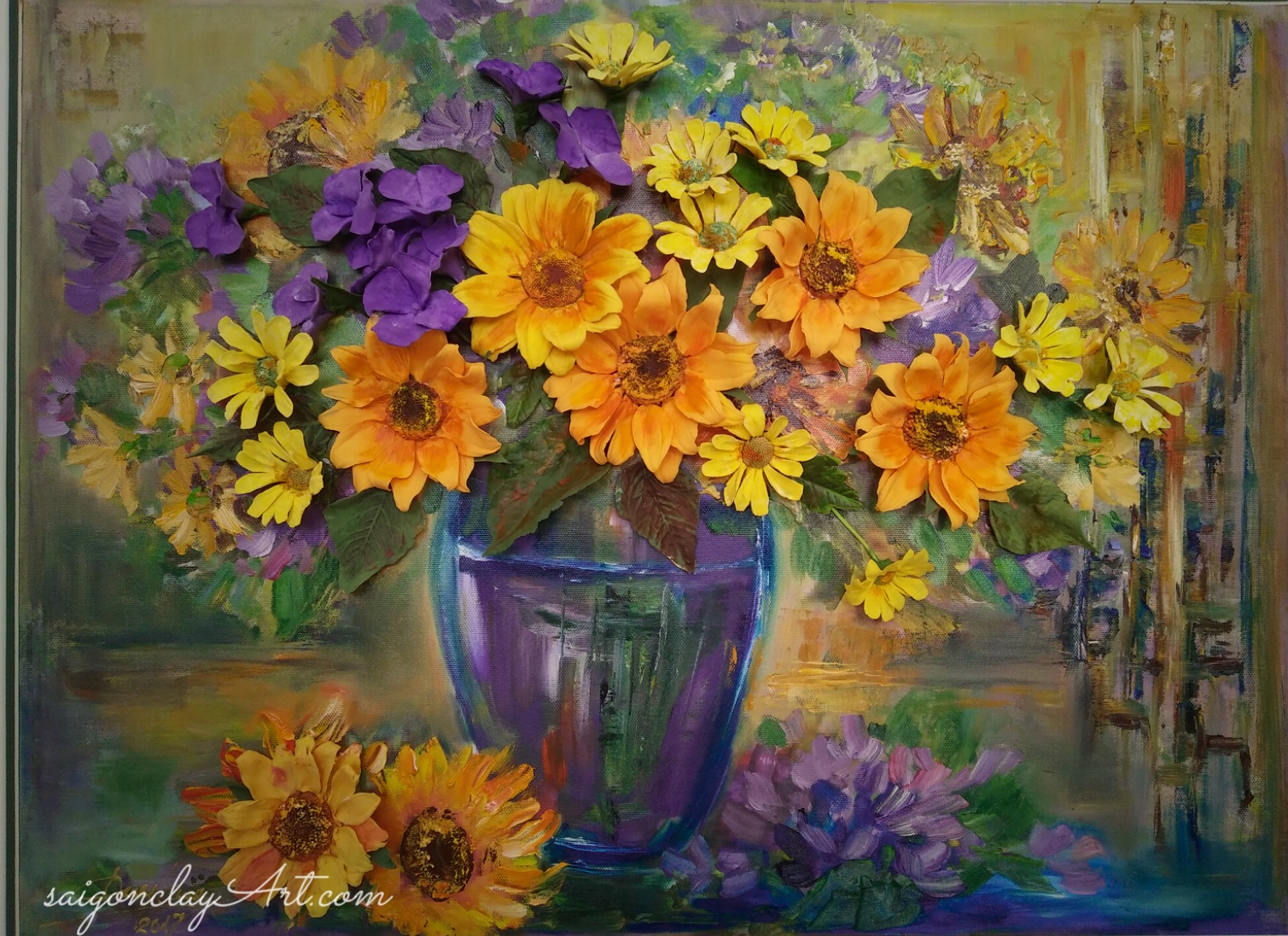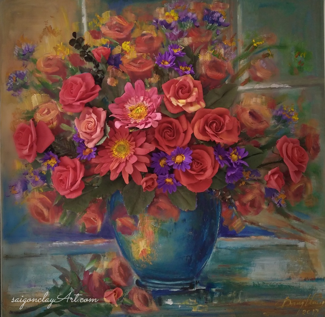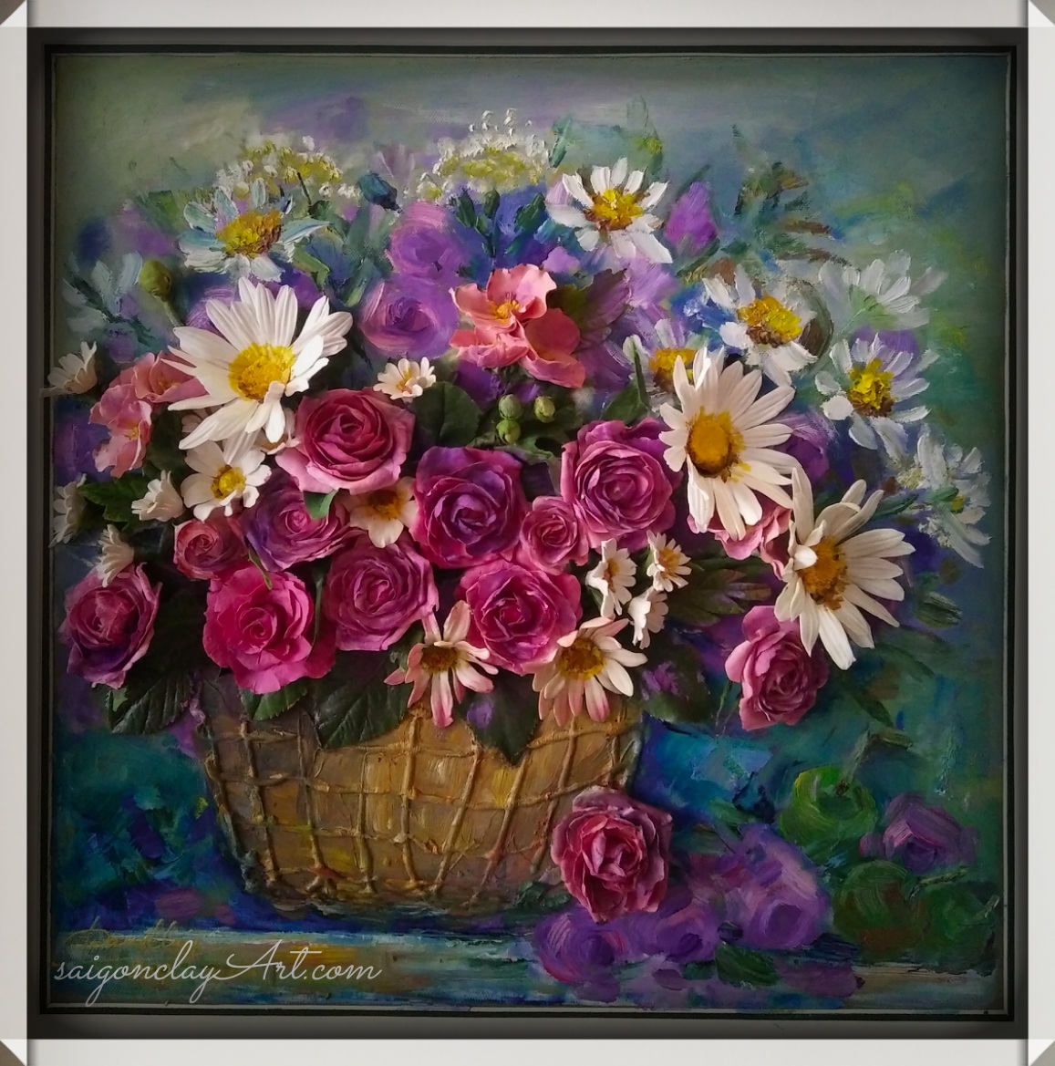 Tranh hoa Nghệ thuật 203 25/10/2017 Saigon Clay Art . Clay Art Painting, Clay flower, Oil painting, Tranh sơn dầu CAP203 – Tác phẩm: Hoa Tinh Yêu 1 – size 60×60