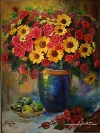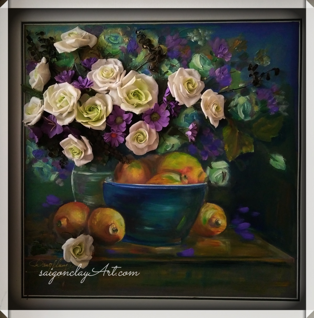 Tranh hoa Nghệ thuật 194 30/08/2017 Saigon Clay Art . Clay Art Painting, Clay flower, Oil painting, Tranh sơn dầu CAP194 – Tác phẩm: Thịnh vượng – Size 63x53cm