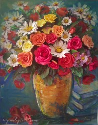Tranh hoa Nghệ thuật 197 25/09/2017 Saigon Clay Art . Clay Art Painting, Clay flower, Oil painting, Tranh sơn dầu CAP197 – Tác phẩm: Hoa Tình Yêu 2 – Size 60X60 cm