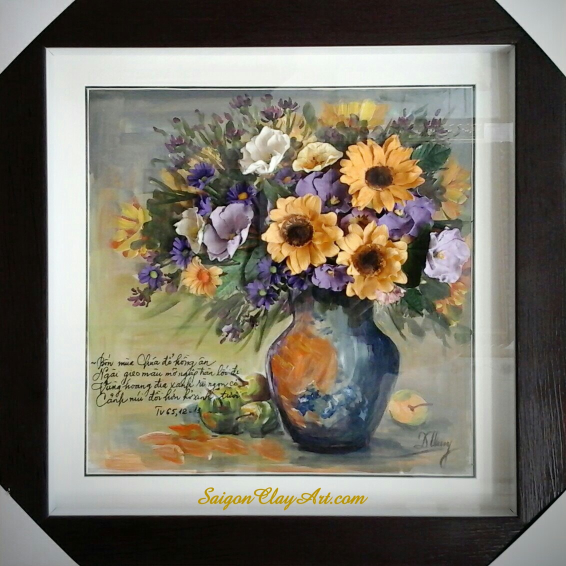 Tranh hoa Nghệ thuật 164 23/01/2017 Saigon Clay Art . Clay Art Painting, Clay flower, Oil painting, Tranh sơn dầu CAP164 – Tác phẩm: Sắc Xuân 07 – Size 60×60 cm