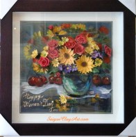 Tranh hoa Nghệ thuật 168 13/03/2017 Saigon Clay Art . Clay Art Painting, Clay flower, Oil painting, Tranh sơn dầu CAP168 – Tác phẩm: Happy Women Day 01 – 60x60cm